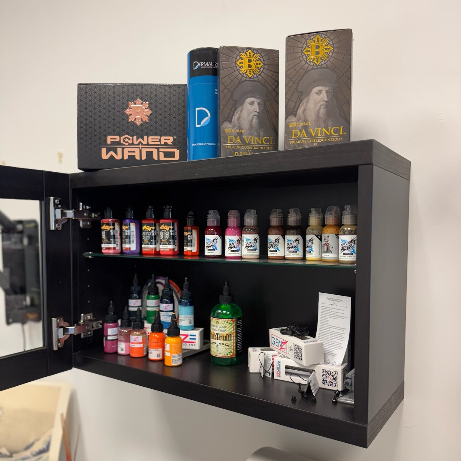 In studio usiamo prettamente materiale sterile e monouso, gli inchiostri sono solo colori certificati, controllati e approvati secondo gli ultimi standard vigenti.